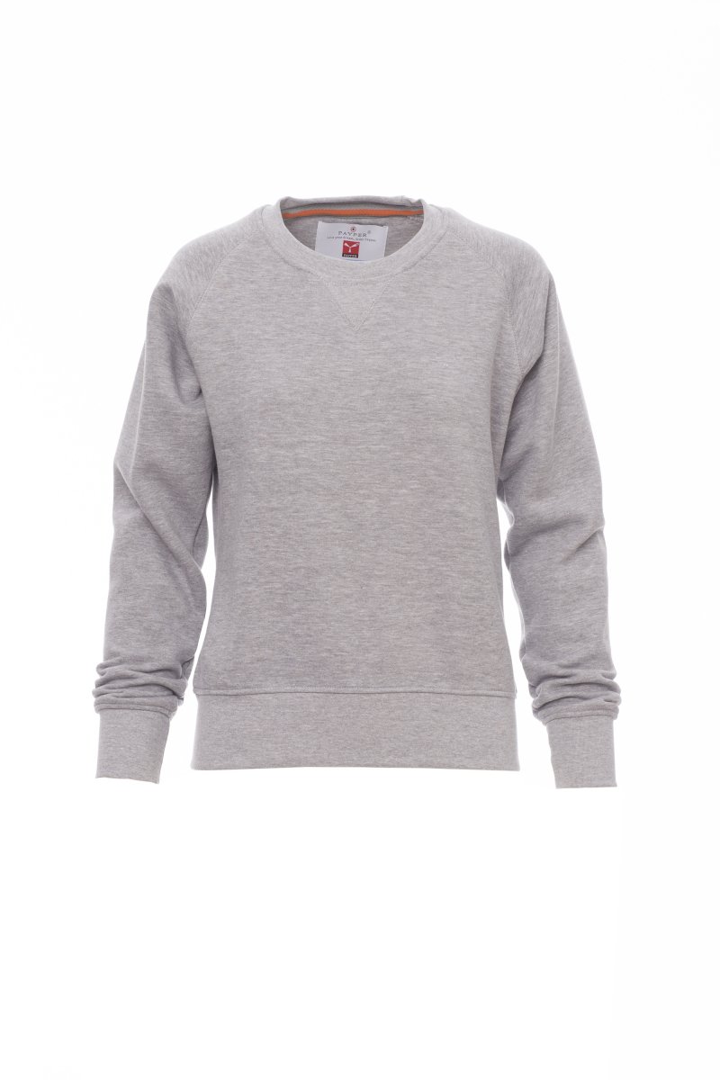 Damessweatshirt met ronde hals, met raglanmouwen, V-stiksel bij de hals. Ribboorden met stretch aan de zoom en mouwen, versterkte naden.
